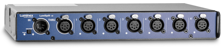 A/B 영역 선택 기능이 있는 10개의 포트 LumiSplit은 여러 DMX라인을 구성할 때 최고의 포트 활용을 제공합니다.